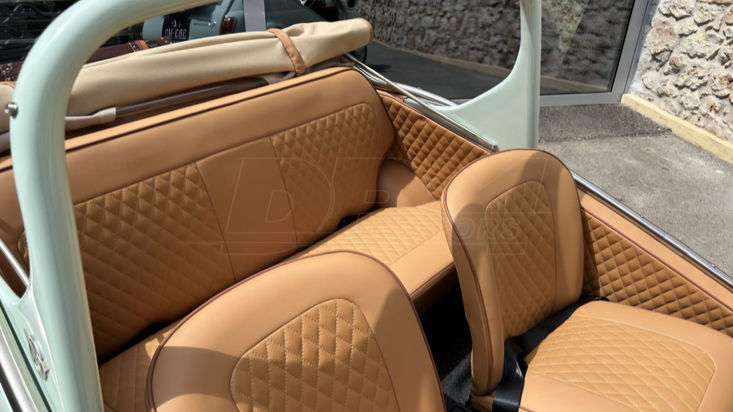 Sur une base de Fiat 500 F, le moteur, la boite les freins la carrosserie, la sellerie, et capote sont neufs.